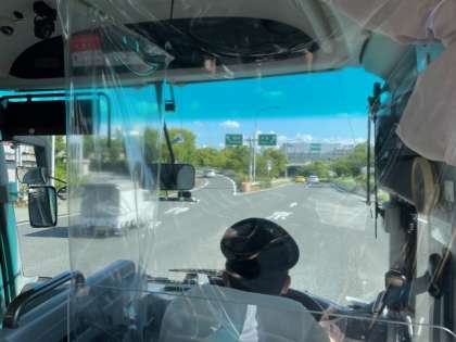 名神高速道路に豊中インターから入りました。車内では、キャンプソングが流れています。