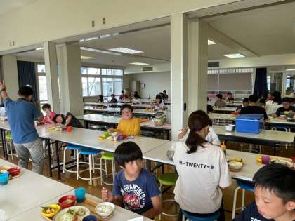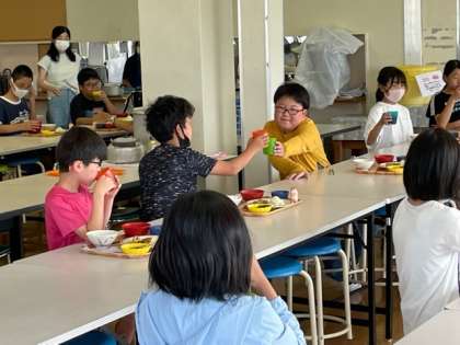 余裕を持って定刻に朝食を始めることができました。一昨日に続いて、今日誕生日を迎える児童にみんなでお茶の乾杯をしました。