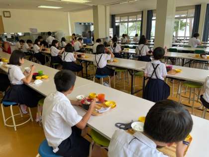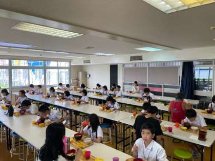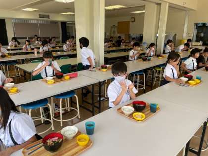 琵琶湖青少年の家のご好意で、30分も早く食堂に入らせていただきました。黙食で、これまでの活動を振り返りながらいただいています。全員元気です。