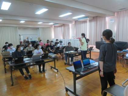 ICT機器の活用に向けて、ICT支援員からの研修を受けています。