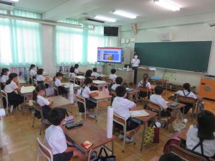 1年生の教室でも、子どもたちはしっかりと話を聴いていました。