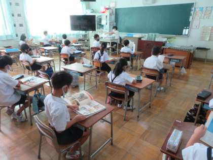 木曜日の朝の時間は児童集会ですが、今週は朝の読書タイムとしています。