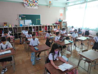 子どもたちは、これまでの読書タイム同様に読みたい本を自分で選んで静かに読書していました。