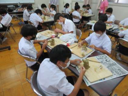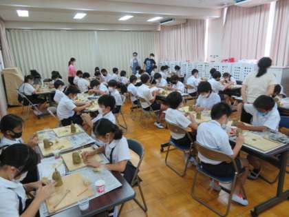 子どもたちは、それぞれに個性的な埴輪を作り上げていました。