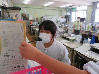 しっかりとよくとおる声で、給食の献立や給食に関わる話、給食クイズなどを放送していました。