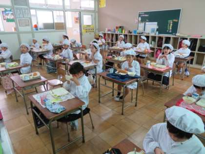 どの学年、学級も徹底して黙食に取り組んでいます。