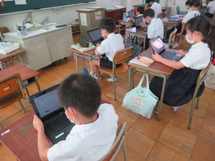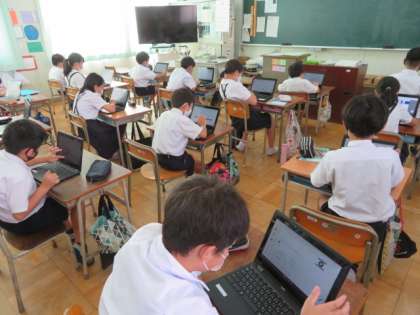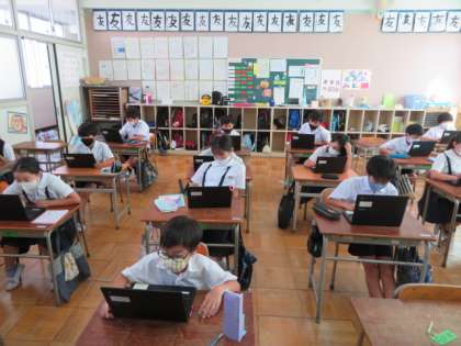 1・2組ともそれぞれの教室で、デジタルドリルの算数の学習にチャレンジしていました。