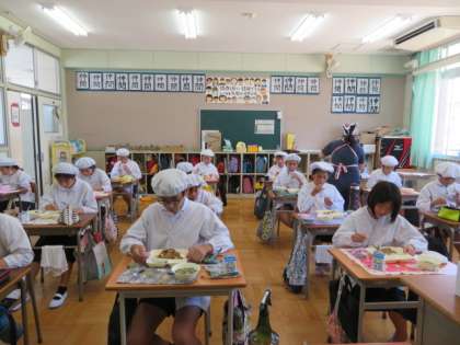 8/27 金 給食の時間 モクモク黙食 給食 3