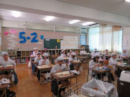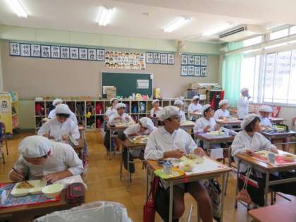 どの学級も落ち着いており、食べることに集中しています。