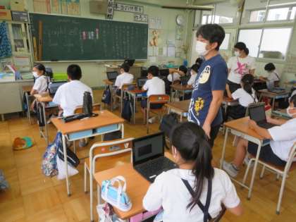 学習端末を使って心の天気を入力したり、家庭と学校の双方向通信ができるようにいろいろと確認の活動をしたりしていました。