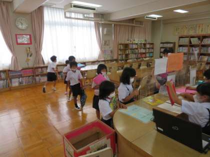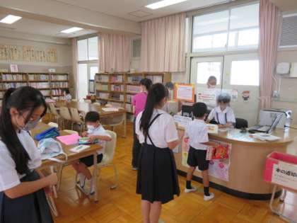 1年生や6年生が来て、本の返却や貸し出しを行っていました。
