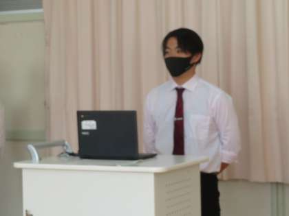 校長からの話に続いて、実習生のあいさつを一人ずつ行いました。