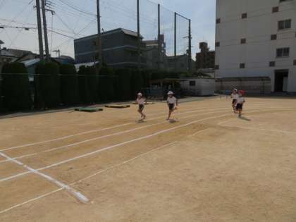 子どもたちは、ラインを越えることなく自分のコースを守ってしっかりと最後まで走り切っていました。