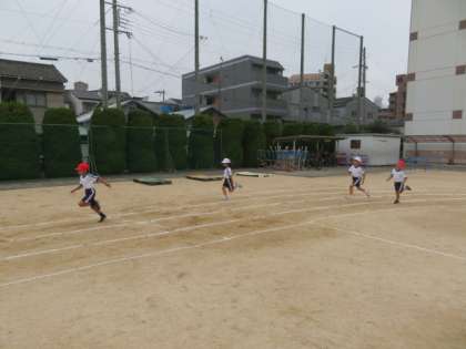 子どもたちは、各コースの線を踏み越えることなく、コースを守って最後まで走ることができました。