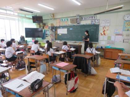 習熟度別学習で3教室に分かれて「複合体積が底面積×高さで求められるか考えよう」という課題で、それぞれに学習を進めていました。
