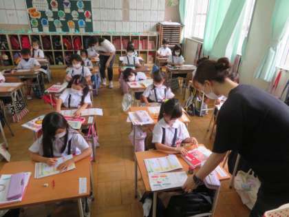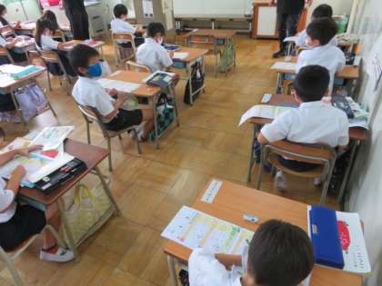 「かんじのかきかたをれんしゅうしよう」をめあてに「小」の漢字の学習をドリル等も使いながらしていました。