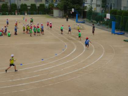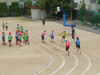 4時間目には、運動場も使える状態になったので、運動会本番を意識して実際にリレーをしました。