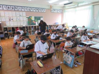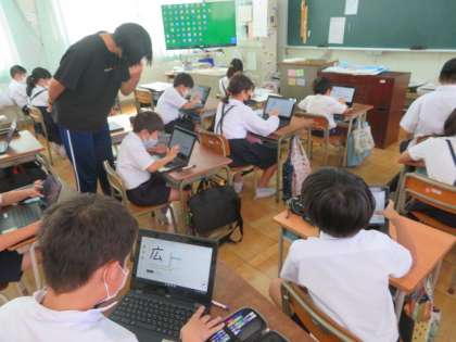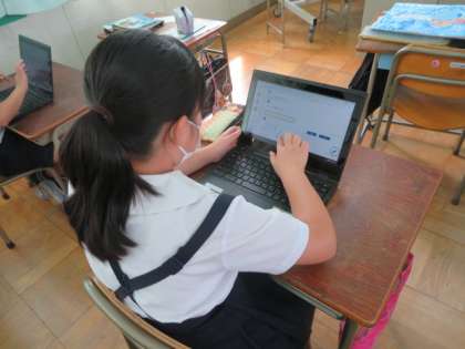 デジタルドリルで国語の漢字などの問題にチャレンジしていました。