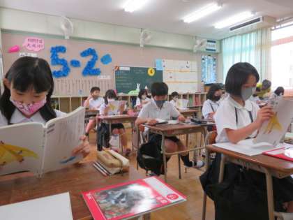 「注文の多い料理店」で、物語の出来事を整理して、不思議な世界の入り口、出口はどこかを考えましょうというめあて、本を音読したりしながら学習を進めていました。