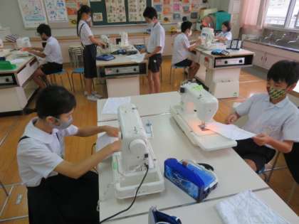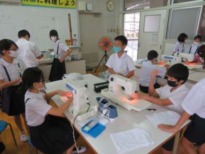 ミシンを使う実習は、ナップサック作りを終えてぞうきん作りにかかっていました。