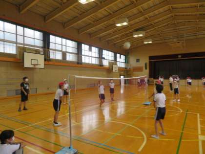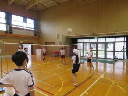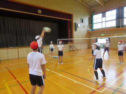 いい雰囲気で、お互いにソフトバレーボールを楽しんでいます。