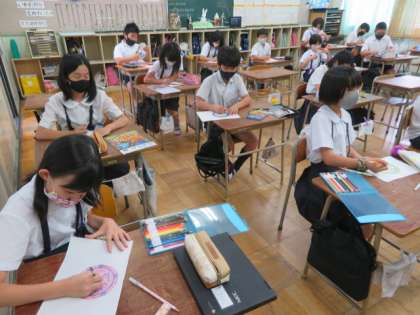 芯材を使っての紙粘土の立体作品「オリパラ」作成と並行して、色鉛筆での彩色を楽しんでいました。