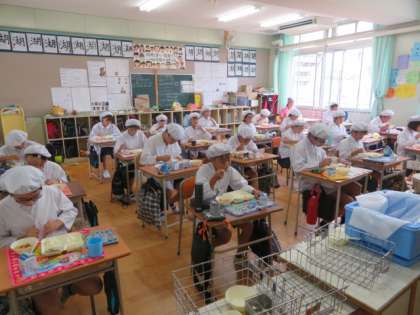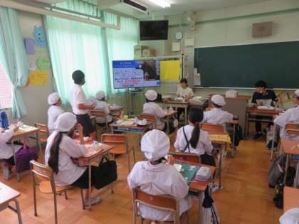 2組も「月見の行事献立」の映像を視聴しながら、黙食・完食でした。