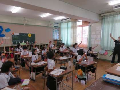 など、一日の生活とその時刻について訊かれ、英語でそれぞれに答えていました。