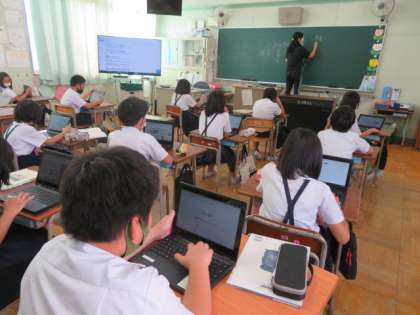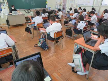 学習用端末でネット検索し、和の文化や伝統について各自で調べていました。