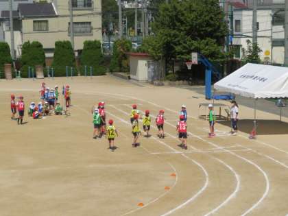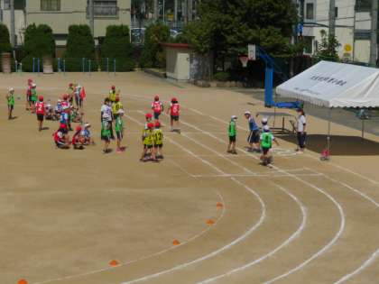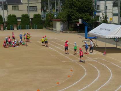 リレーの引継ぎでは、スタートのタイミングをはかりながらスムーズにできていました。