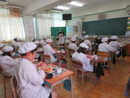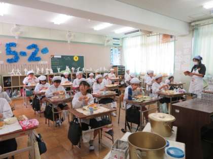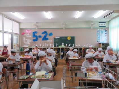 落ち着いた雰囲気で、マナーを守ってしっかりとよく食べる5年生の子どもたちです。