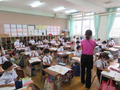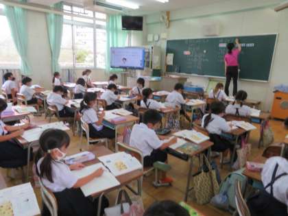 「たしざんをしよう」で、7+4などのくり上がりのある足し算のしかたを考えながら計算方法についてまとめていました。