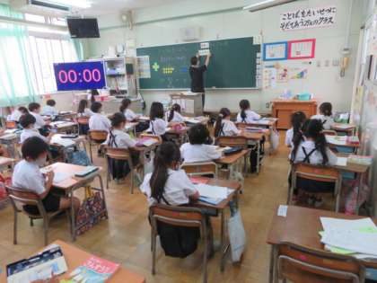 2組では、9+6の計算を例に、くり上がりのある足し算の計算方法について学習していました。