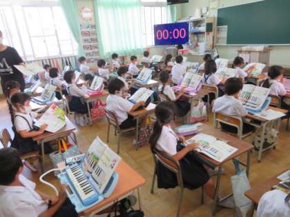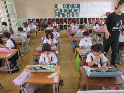 鍵盤ハーモニカの扱いに気をつけながら、列ごとなど個別演奏で行っていました。