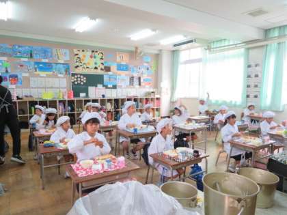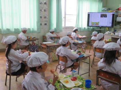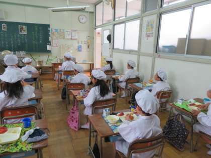 完食を目指し、黙食でしっかりと給食をいただいていました。