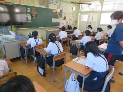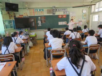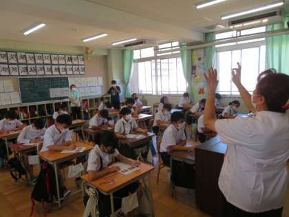 大阪市教育委員会より歯科衛生士が派遣され「歯と口の健康教室」ということで、歯の健康について指導していただきました。