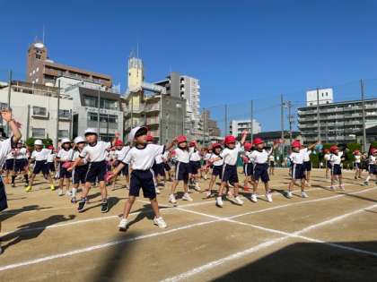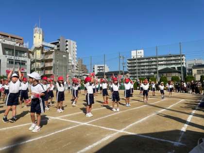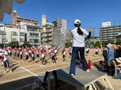 開会式後、低学年の部の「足が速くなるダンス」です。
