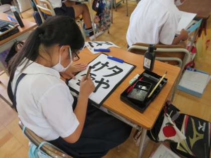 「夕やけ雲」を書写していました。