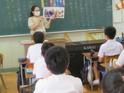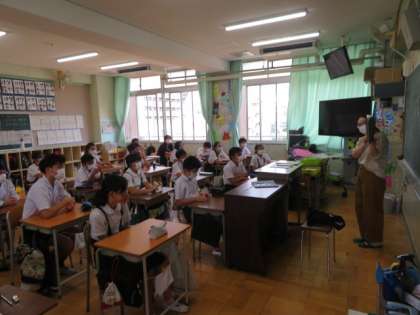 6年1組の子どもたちも、絵本の話を集中して聴いていました。