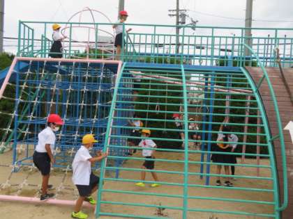 先生も子どもたちに加わり、一緒に楽しく運動遊びをしています。