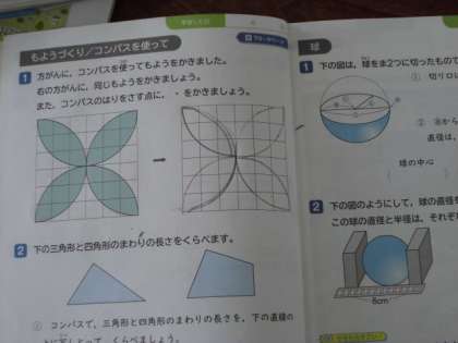 コンパスを使って、長さを比べたり、きれいな図形をかいたりしました。なかなかまだうまく使いこなせない子もいましたが、何度も何度も挑戦し、うまくいったときは大喜びでした。