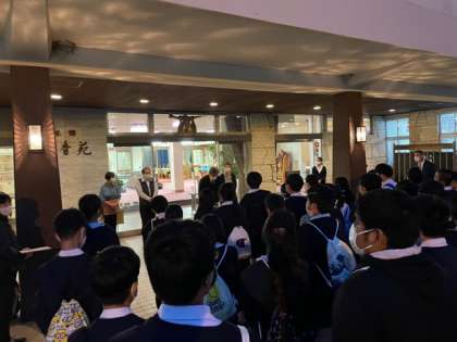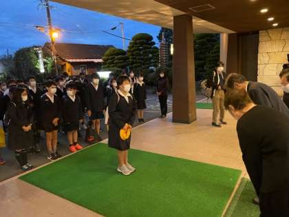 宿舎前で、開舎式を行いました。素晴らしい代表児童の挨拶そして全員の態度でした。