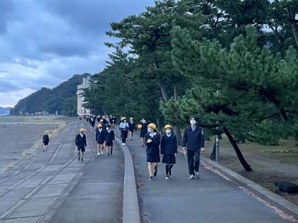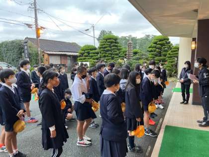 無事に宿へ帰ってきて、朝の集いを行いました。全員揃っての活動でした。