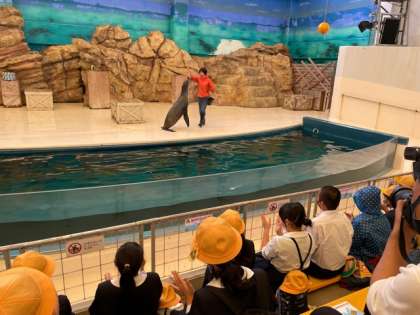 アシカの素晴らしい技に大いに盛り上がっています。