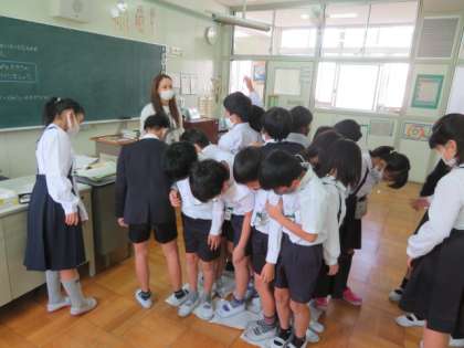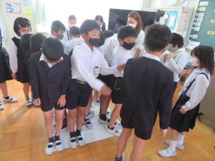 1平方メートルの広さを紙で作り、その上に何人が乗れるかということで、広さを体感していました。