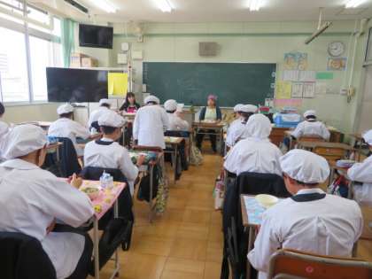 マスクを外して、給食をいただくときのマナーを徹底しています。