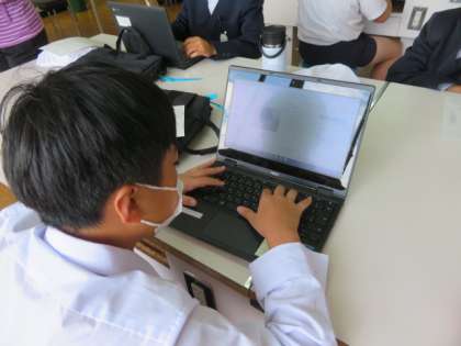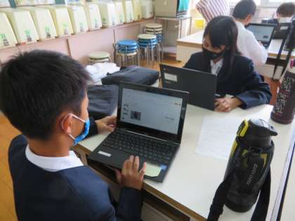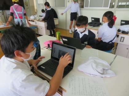 「にら焼き」の調理実習を終え、個人の学習用端末に調理したニラ焼きを写真撮影し保存していました。