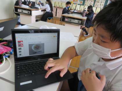 それぞれにこれまでの調理を含め、調理実習記録として個人の学習用端末に保存しています。