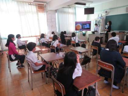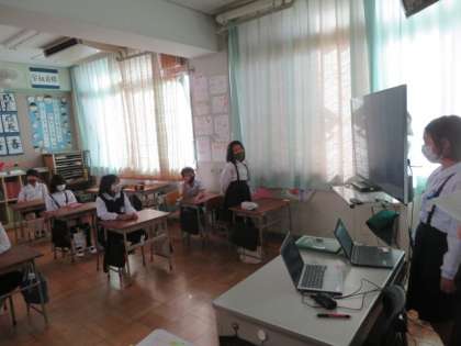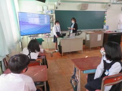 国語で学習した「和の文化」について、児童一人ひとりがパソコンで発表資料を編集してプレゼンテーションをしていました。