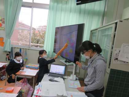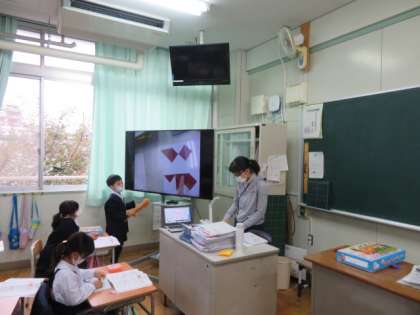 さんかくの板を動かして、いろいろな形を作ったものを発表していました。